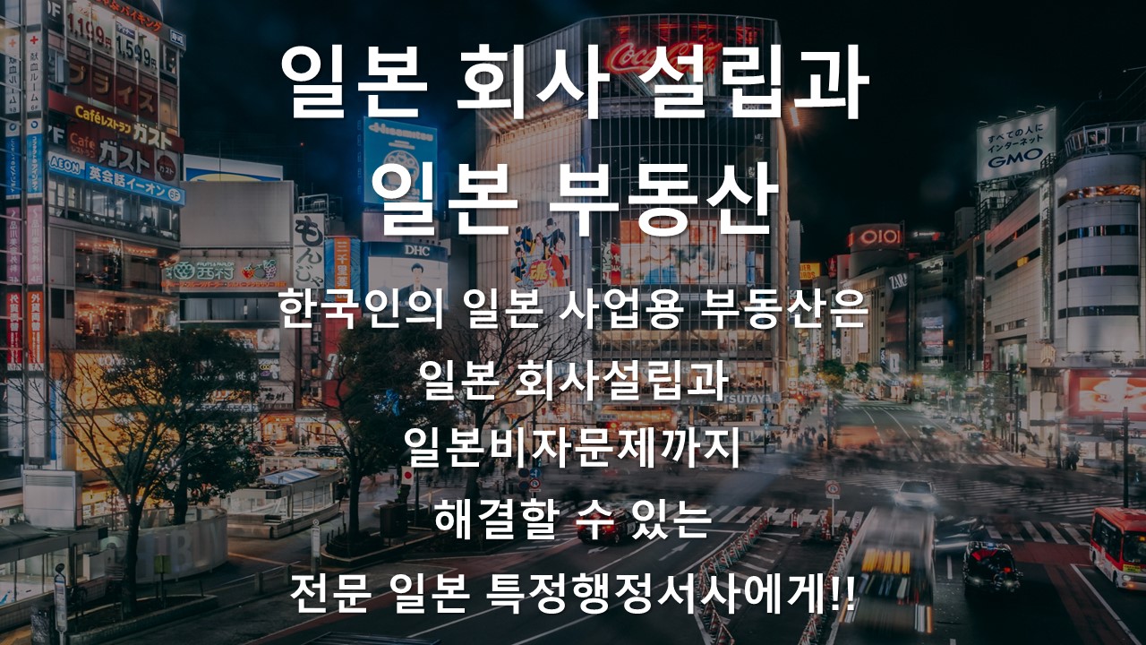 ■한국인과 한국기업의 일본 사업용 부동산은 일본 회사설립과 일본 비자까지 해결할 수 있는 전문 일본특정행정서사에게 !